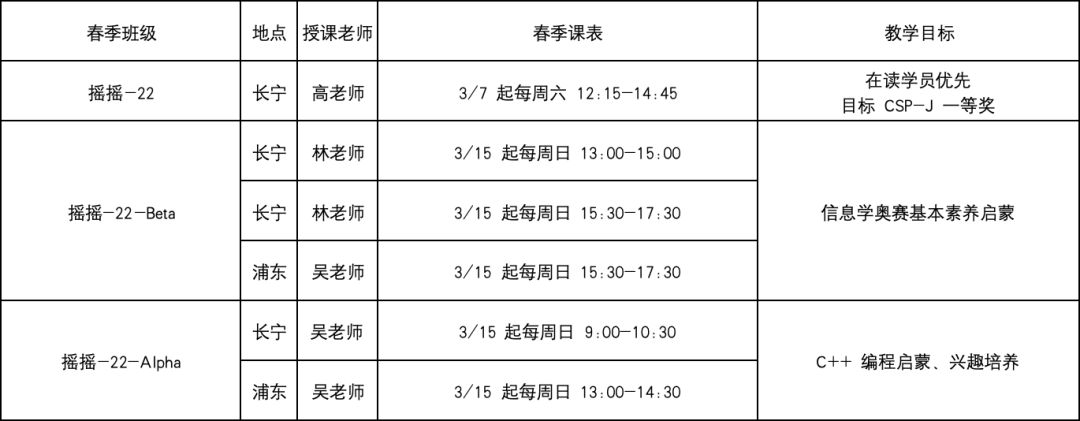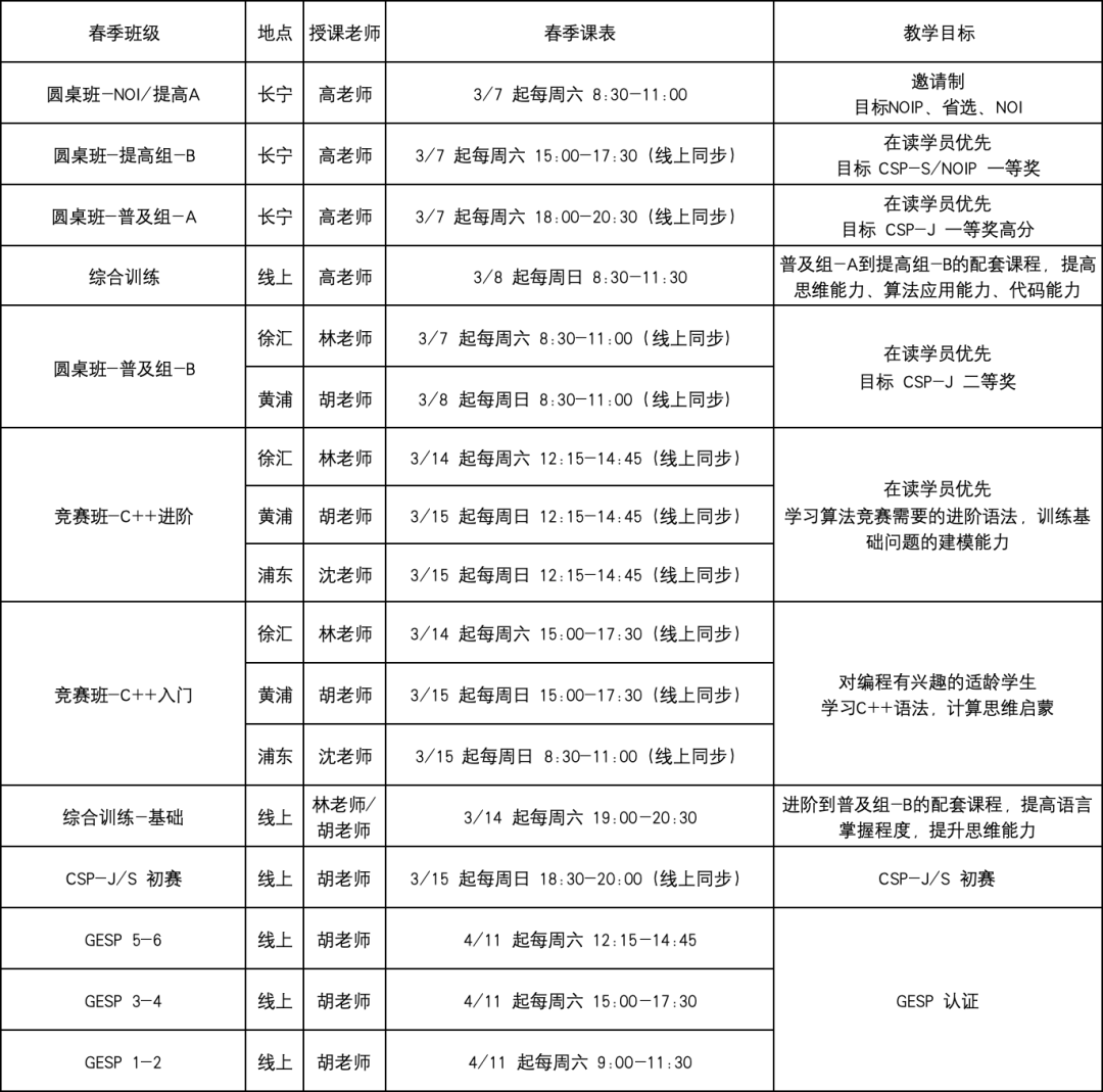 2026春季课表: